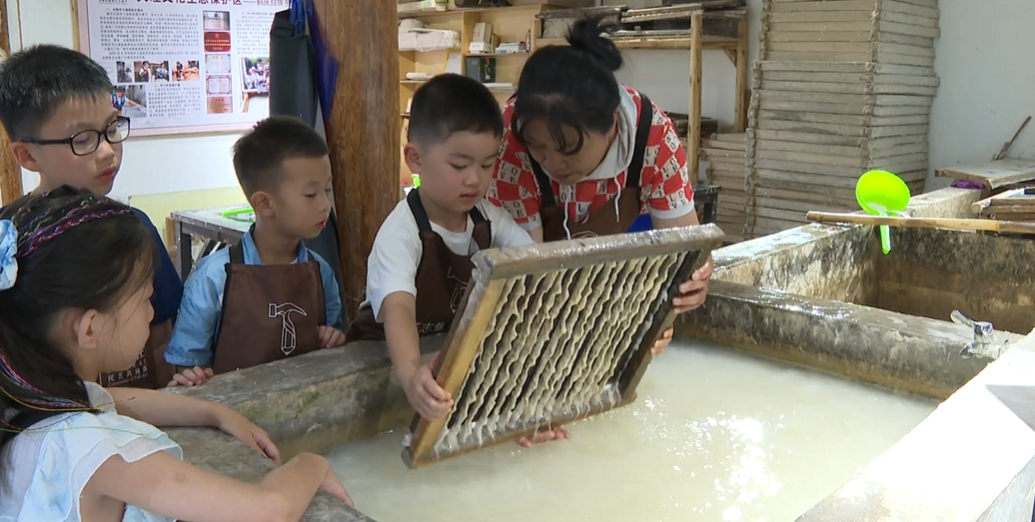 我很喜欢在这里制作纸张,我对我的作品很满意,它是用树皮捣浆做出来的,整个制作过程非常神奇。