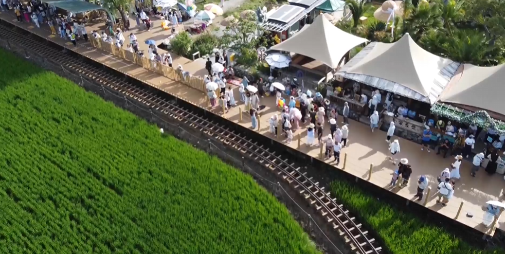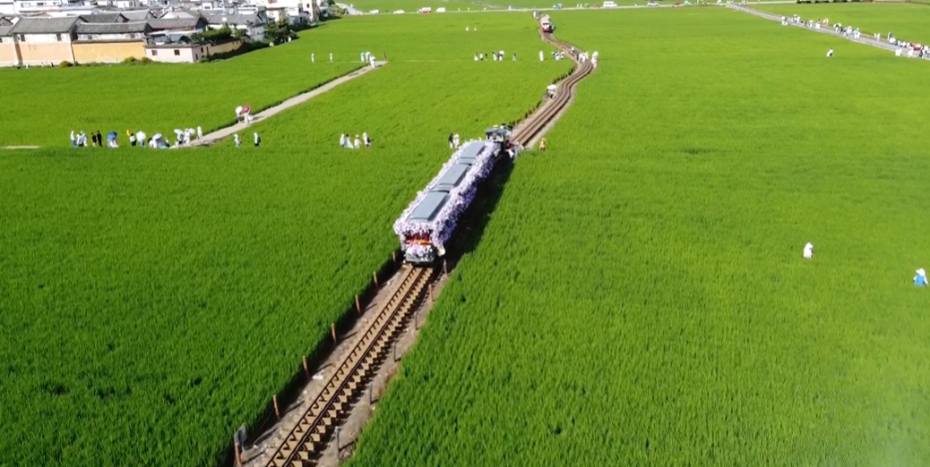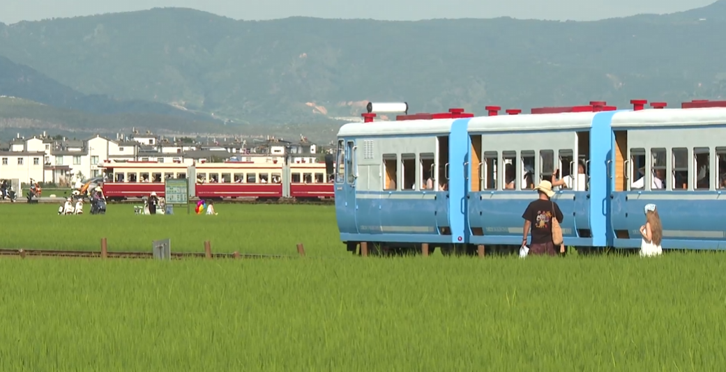美丽的喜洲风景如画,完全就是宫崎骏动漫现实版。蓝天白云下,碧畴万顷间,“有风号”“麦浪号”“喜洲号”小火车载着游客在稻香弥漫中缓缓驶向“诗和远方”。暑期里,这里每天都吸引着成千上万的游人前来体验浪漫之旅。