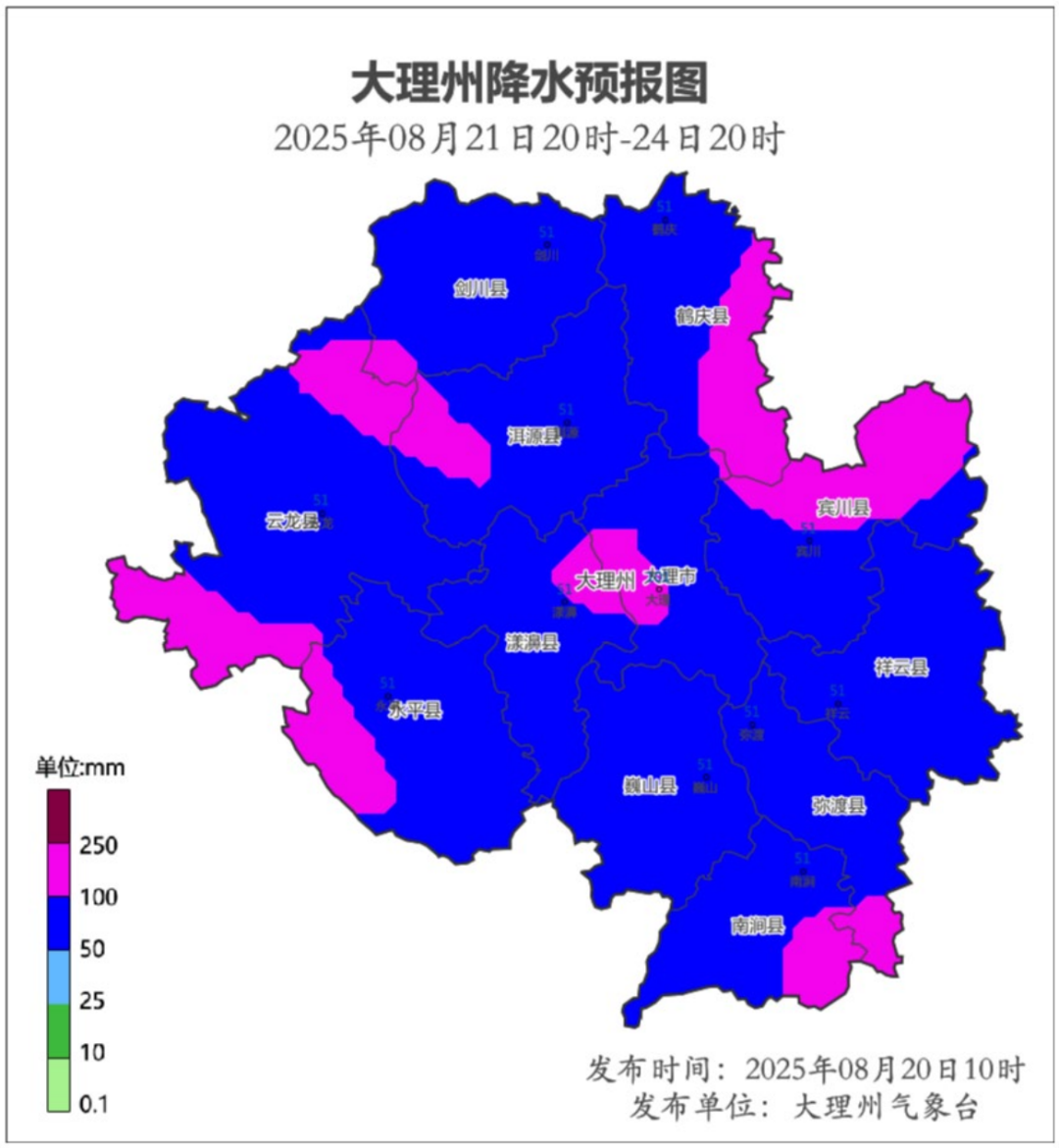 受辐合区和西南气流共同影响,预计8月22至24日我州将出现大雨局部暴雨、大暴雨,并伴有雷电、短时强降水、大风、局地冰雹等强对流天气。强降水主要出现在22日夜间至23日夜间,过程累计雨量50~70毫米,局地90~120毫米,需防范强降雨可能诱发的山洪地质灾害。
