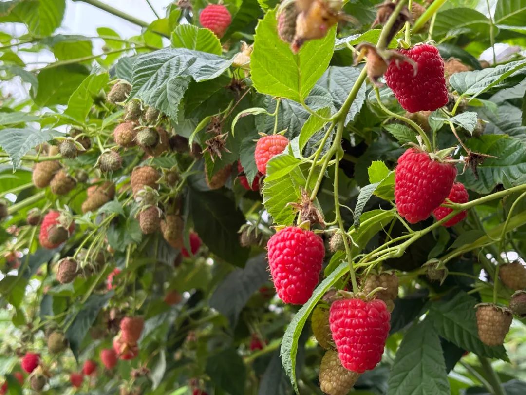 小白龙现代农业产业园浆果种植基地种植的H6品种树莓,糖度达9.7度,糖酸比达13.3%,口感酸甜适中,风味独特。据基地负责人李四红介绍,树莓种植采用无土栽培技术,配合水肥一体化灌溉,精准调控养分供给。更值得一提的是,基地还利用生物防治手段,减少农药使用,确保树莓更加安全、有机,并错峰上市,赢得了价格优势。