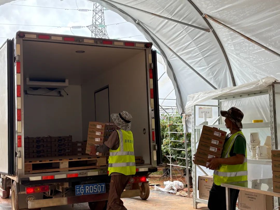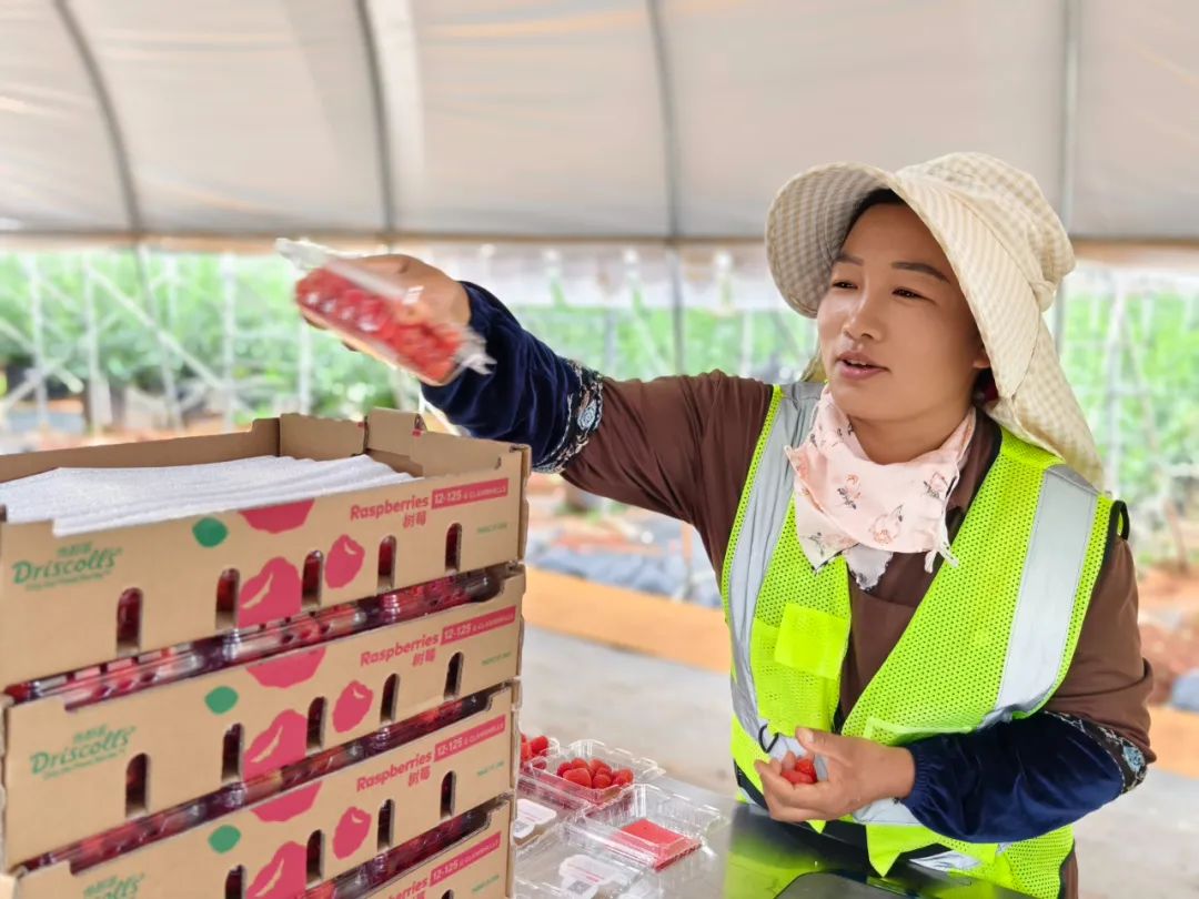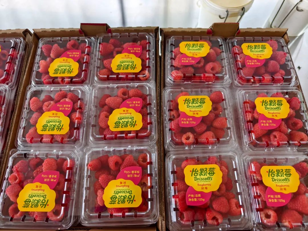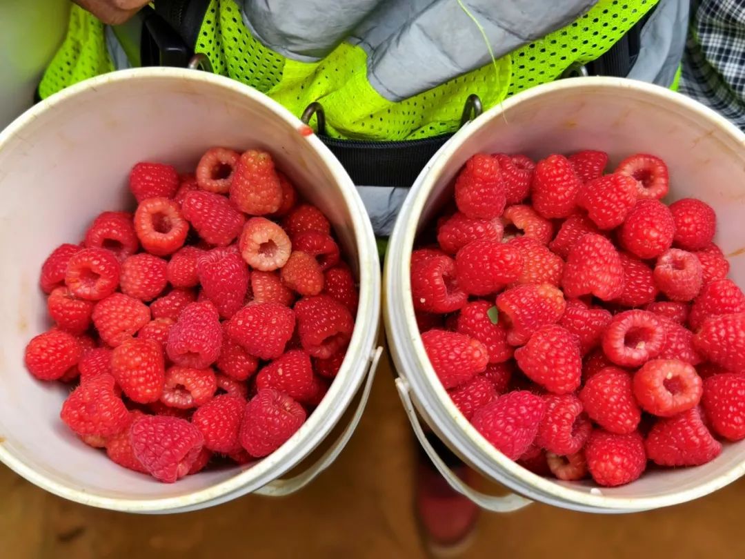 采果前工人都要消毒戴帽、摘去杂物,采果时轻拿轻放、丢弃坏果。采摘后的树莓经过严格的色号辨别和质检后,再运往丽江冷库,并以每箱1.5kg(12盒),150元至300元的价格,在一、二线城市的大型商超进行销售,让每一个消费者都能品尝到来自云岭大地的甜蜜红果果。