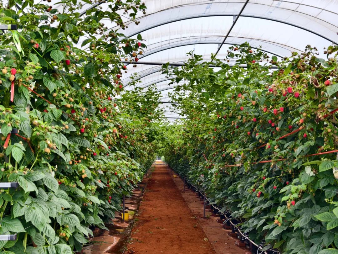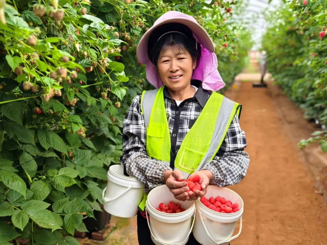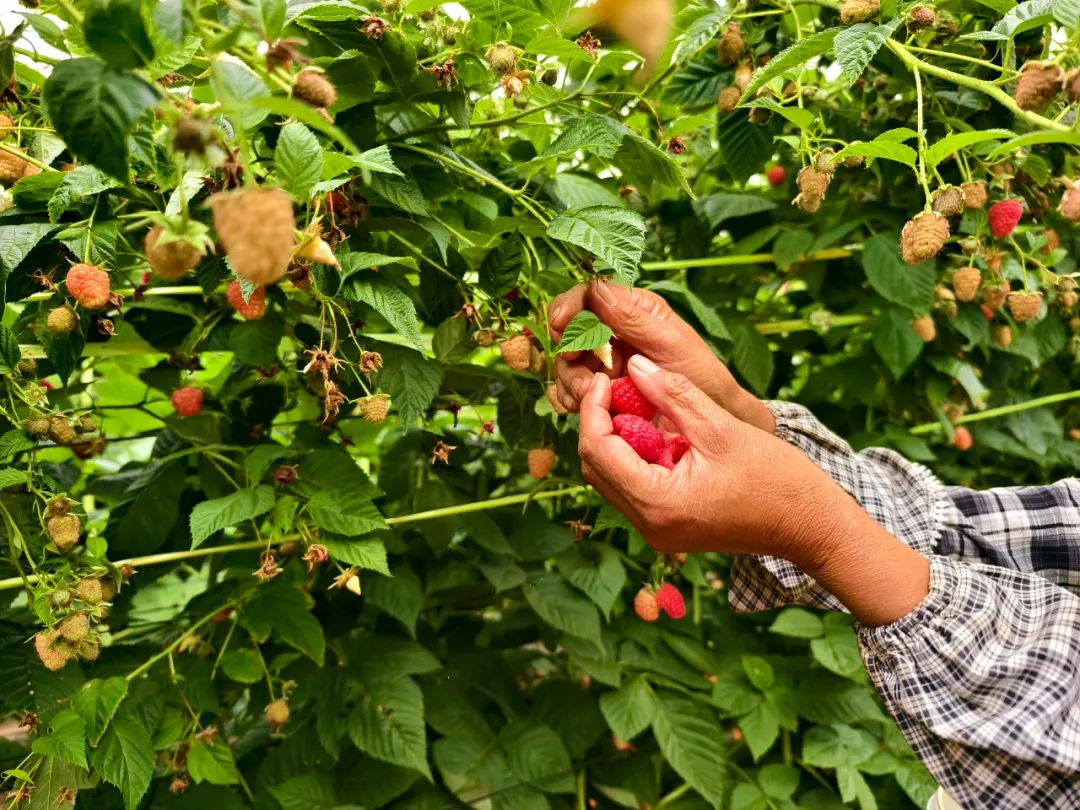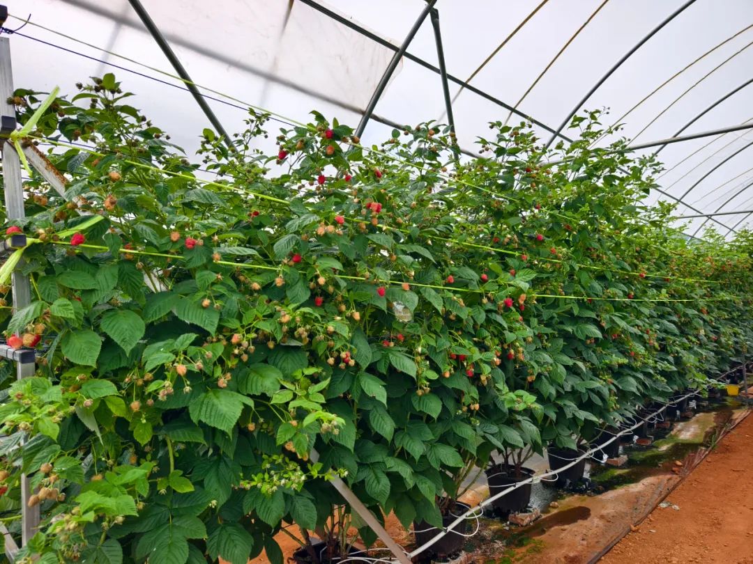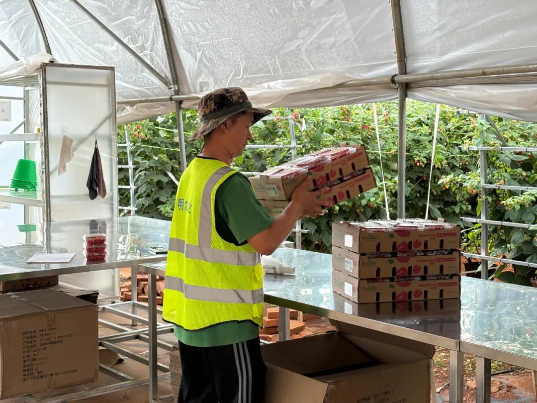 2024年,金墩乡政府引进启明云南农业有限公司,企业共投资2000万元,用于树莓和蓝莓种植,面积达150亩。今年3月,30亩树莓顺利移栽,如今已迎来盛果期,亩产约1.2吨,市斤单价50至100元,经济效益十分可观。