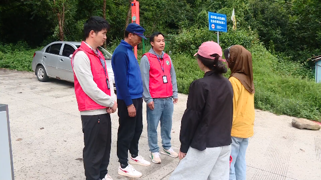 在大理镇阳和村(元阳书院)进山路口,由苍山洱海国家级自然保护区管理局大理市苍山分局工作人员、大理市林业和草原局护林员、苍山卫士共同组成的巡查值守队伍正在劝导游客下山。