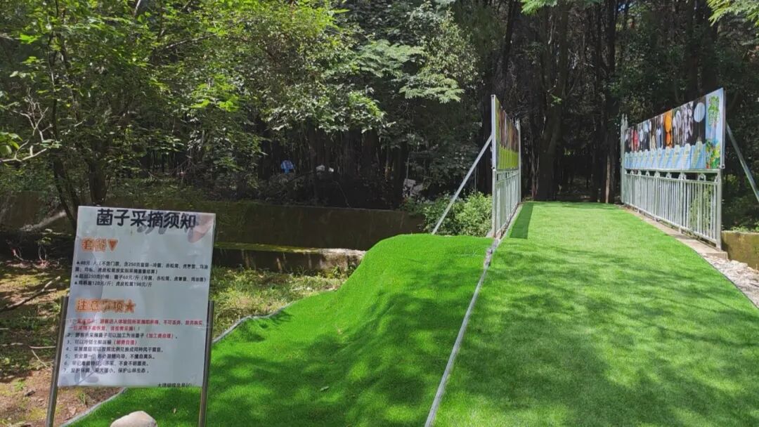 为了让游客能有更好的采菌体验,蝴蝶泉景区在打造“菌香森林”的过程中,尽可能的还原了野生菌在山野之中生存生长的原始环境,游客漫步其中,就仿佛置身真实的山野丛林,趣味十足。