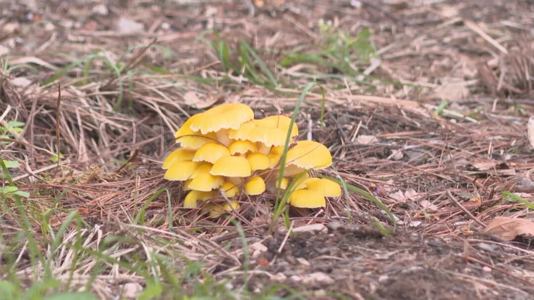 蝴蝶泉景区内的林木资源丰富,水土条件良好,拥有适宜野生菌生长的自然环境。走进景区内的“菌香森林”,松毛覆盖下的树木之间,冷菌、鸡油菌等数种菌菇散布其间。菌菇的长势良好,稍微眼尖一些,就能很轻易地发现它们的踪迹。