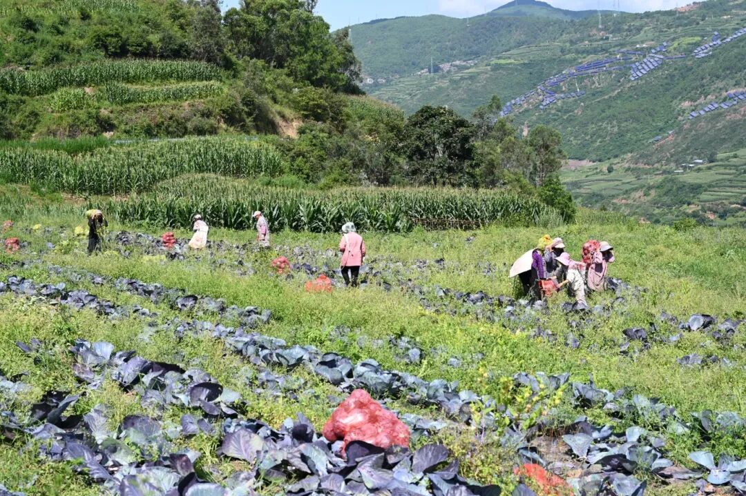 在上王家村地里,云南丰恒业农业发展有限公司董事长罗仪东正带领20余名村民有序地进行采摘、装运作业。一颗颗饱满的紫甘蓝被整齐码放在田埂上,即将发往湖北等多地商超。这一派丰收景象,正是乐秋乡以“订单蔬菜”为支点,撬动富民产业、赋能乡村振兴的生动实践。“在家门口采收紫甘蓝,一天能挣110元,特别方便。”上王家村村民顾永映笑着说。