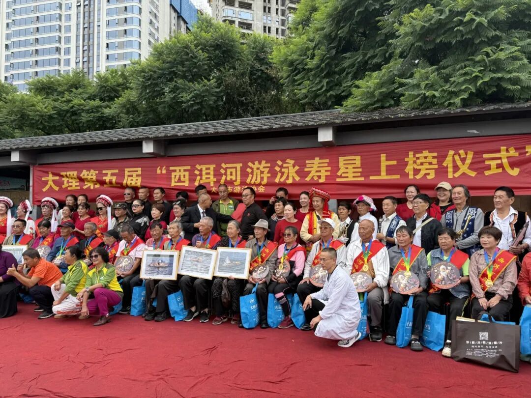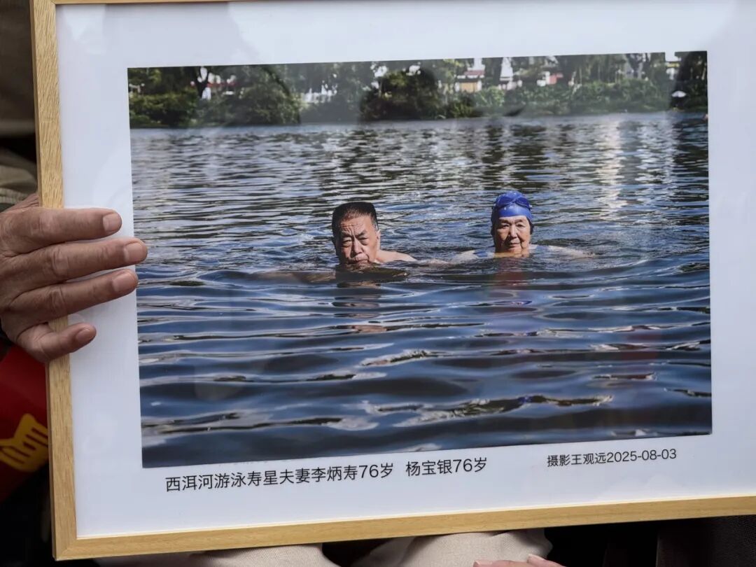 9月13日上午,大理第五届“西洱河游泳寿星上榜仪式”在西洱河畔举行。作为活动的发起者,王观远先生多年来一直坚持为西洱河游泳的老人拍摄照片,建立档案,每年举办纪念照赠送活动,今年是第五个年头。“这不仅仅是一张个人的纪念照,更是生命活力的呈现,这些畅游在西洱河里的老人,用热爱与坚毅,为生命注入了永不褪色的能量。”王观远说。
