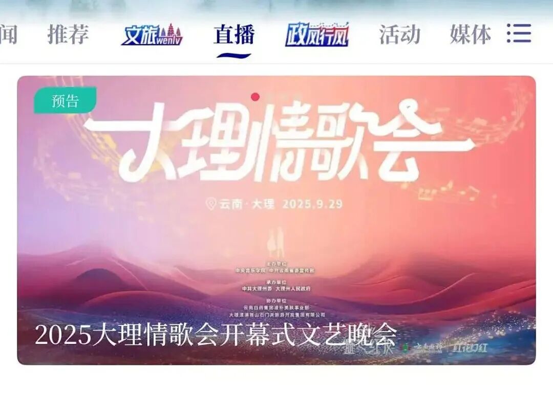 9月29日19:30,“2025大理情歌会开幕式·情歌交响音乐会” ,将在大理州漾濞县苍山西镇金牛村大草坪开幕。
