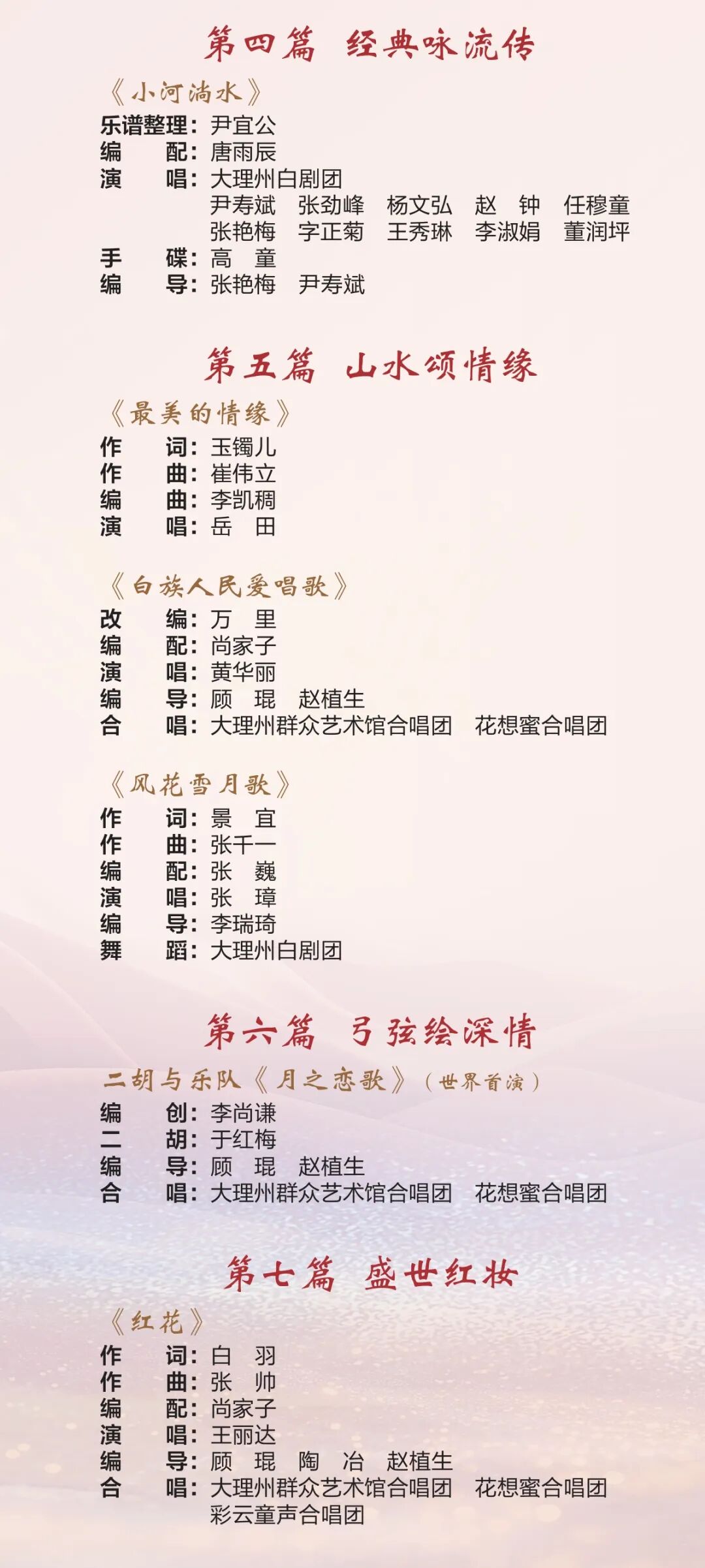 作为本届情歌会的华彩开篇,中央音乐学院携手昆明聂耳交响乐团,联袂大理州代表性非遗传承人与乡土文化能人,首次将恢弘的交响乐与质朴悠扬的大理民歌深度融合。届时,经典情歌、央音倾情帮扶创作的崭新曲目,将在东西方音乐的对话中焕发新生,于山水实景间奏响非遗与现代、艺术与生活交融的华美乐章。