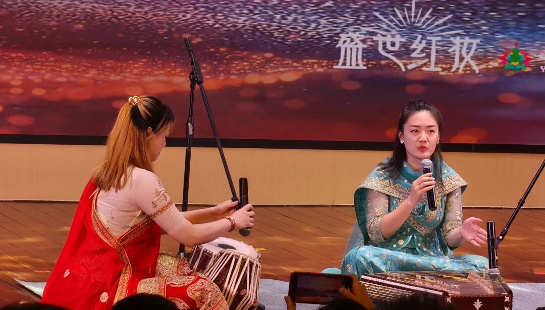 音乐会在北印度古典器乐《南亚风花大理传情》中拉开帷幕。中央音乐学院米炫晔博士演奏桑图尔(印度扬琴),庄静老师伴奏塔布拉鼓,两位音乐家的合作为观众呈现了纯正的北印度古典音乐。
