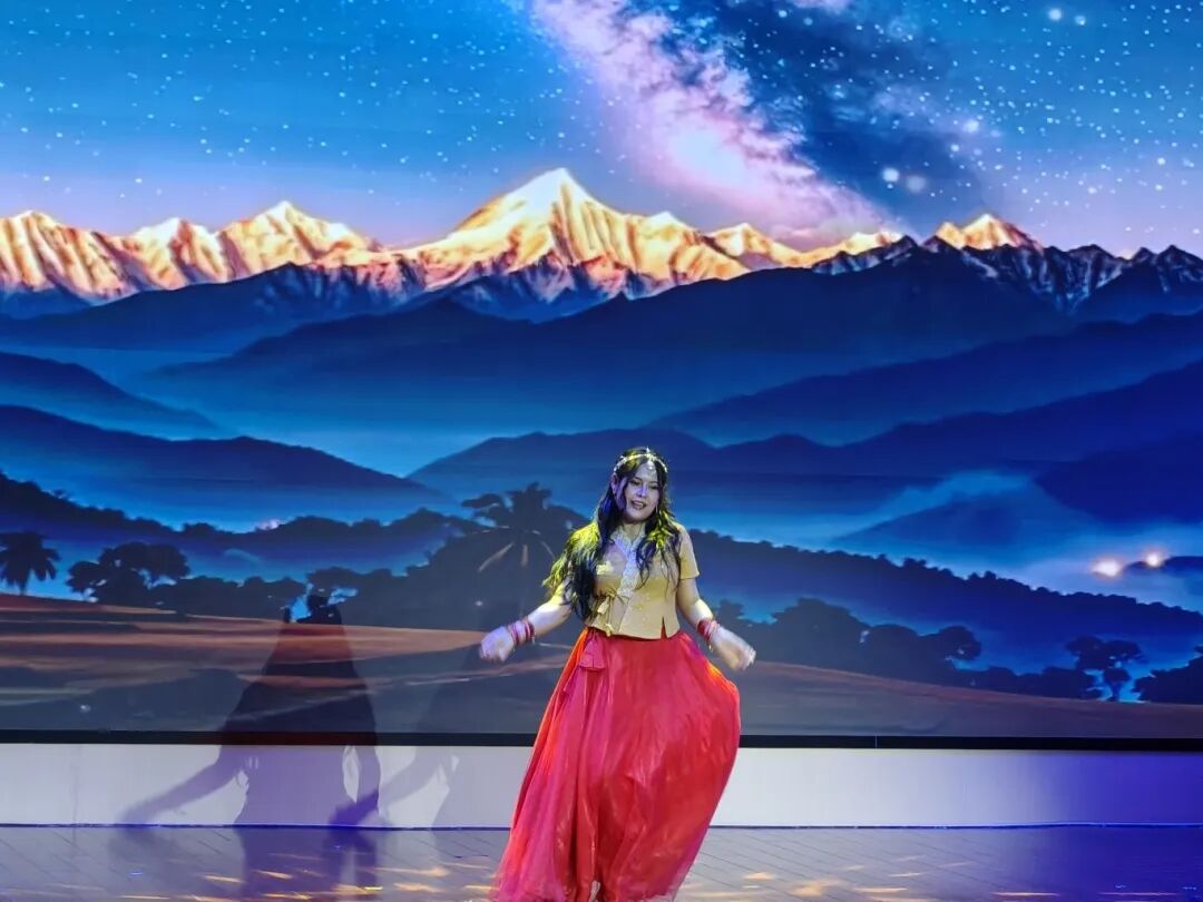 来自马里的留学生沐沐展示着傣族舞的柔美身韵、尼泊尔留学生郝书佳通过尼泊尔传统舞蹈传递出神圣的祝福、来自吉尔吉斯斯坦的艾提娜和蒙古国的谢盈共同表演了一支吉尔吉斯舞,绽放出豪迈与激情······来自九个国家的留学生们演绎着各国风情,既展现出国际学子对多元艺术的诠释,也让各国风情在同一个舞台上相互映照,他们“以舞步传递文化,以表演促进理解”。