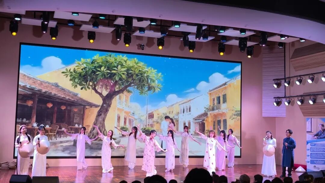 “我今天带来的是越南民歌,这首歌描写了我们家乡的风情,也表达了对故乡的热爱和思念。”