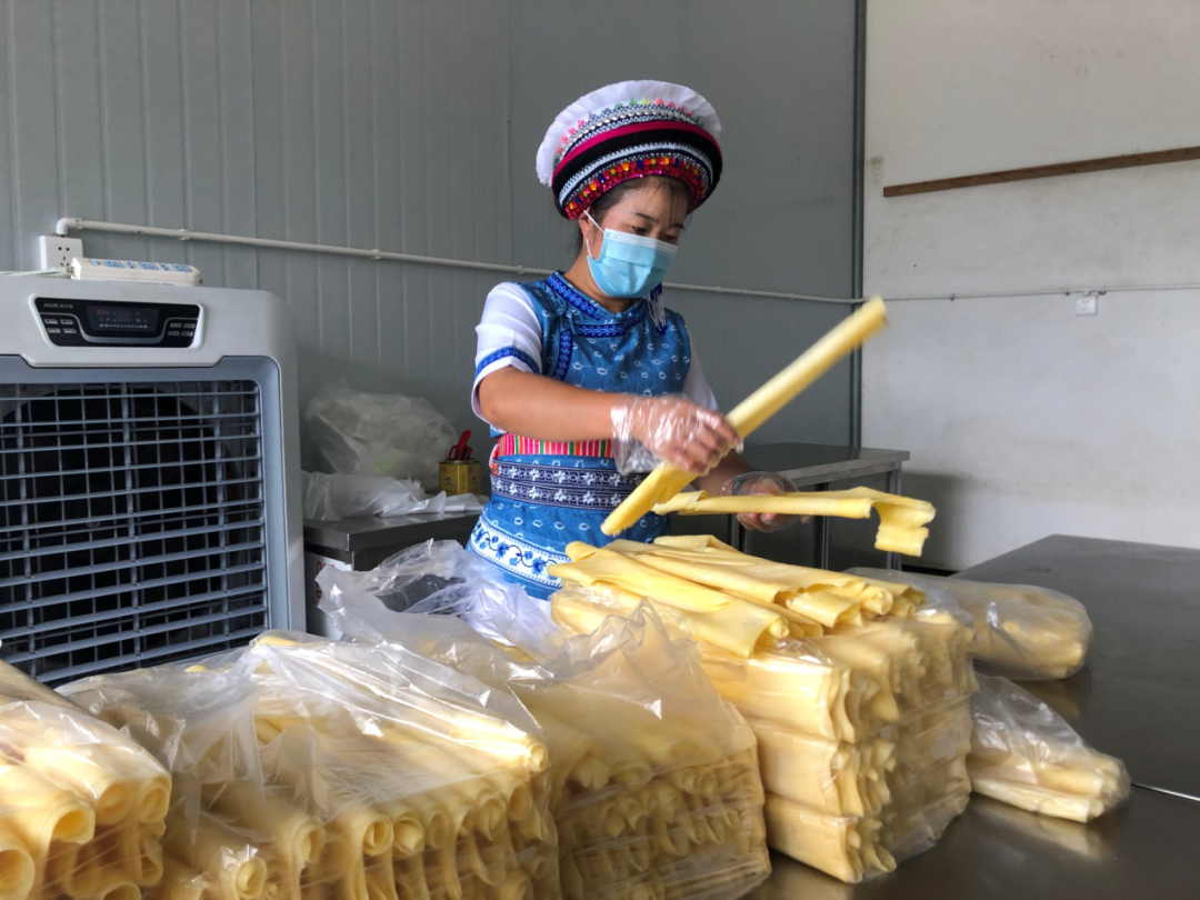 如今,大理市上关镇乐众乳扇坊已初具规模,厂里有固定员工6人,每天乳扇产量可达300多公斤,带动镇内奶牛养殖户近50户,为邻近村民常年提供近30个就业岗位。乐众乳扇坊产品不仅畅销大理各地,还远销昆明等地,新研发的乳条更是受到西藏等地市场的青睐,销量逐年攀升。乐众乳扇坊如同一个强大的磁场,吸引着周边村民共同参与到乳扇产业中,走出了一条“创业带动产业、产业带动就业、就业促进增收”的乡村振兴之路。