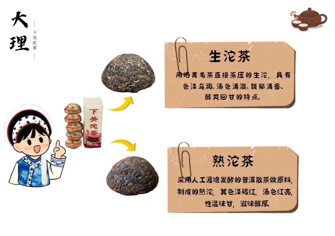 沱茶制作源远流长,在明代《滇略》卷三中就有“士庶所用,皆普茶也,蒸而团之”这样的记载。下关沱茶是由明代的“团茶”演变而来的,因始创于茶马古道中心的大理下关而得名。