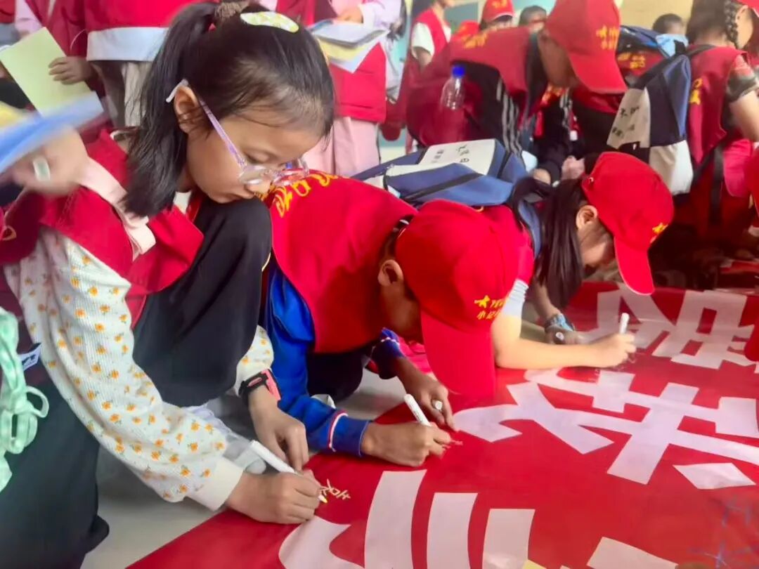 “我志愿成为苍山守护小卫士!”参观结束,小记者们大声宣誓。铿锵有力的誓言回荡在山谷间,表达着青少年守护绿水青山的坚定决心。宣誓仪式后,小记者们依次在“保护苍山 爱我家园”的红色横幅上签下自己的名字。一支支马克笔在横幅上跃动,一个个稚嫩却坚定的签名,汇聚成守护苍山的青春承诺。