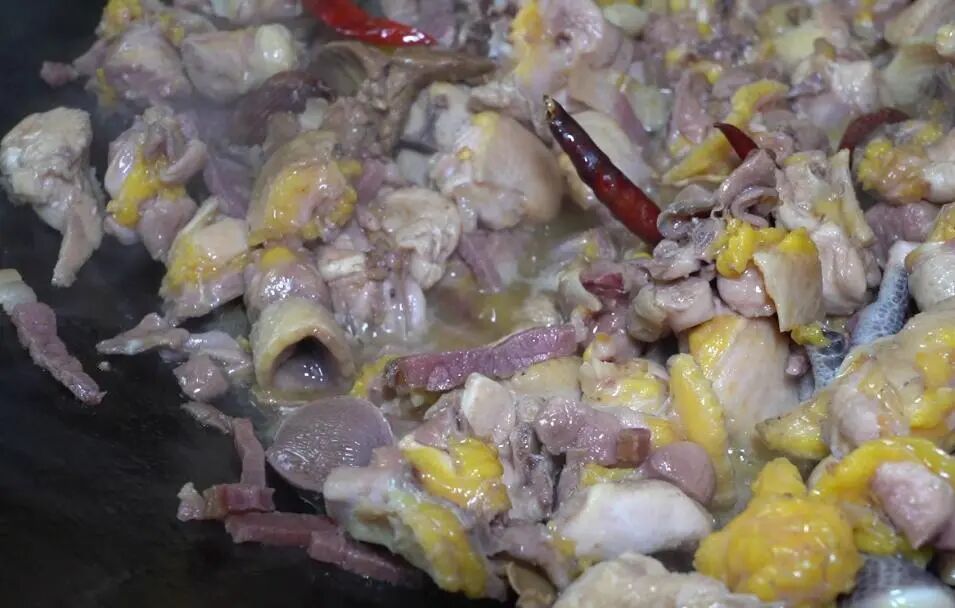 土鸡洗净后剁成块,先将火腿、姜片等调料下油锅炒出香味后,加入适量清水炖煮两个小时,再放入削皮切块的山药,小火慢炖30分钟,一碗喷香扑鼻的土鸡炖山药就可以端上餐桌。