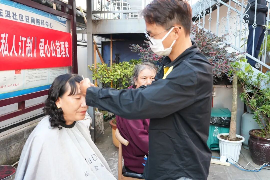 活动开始前,照料中心的爱心公益理发点就格外热闹。几位志愿者理发师早早拿上工具,耐心地询问每位老人的需求 ——“阿爷,您想剪短点还是稍微修修?”“阿奶,刘海要不要留长一点挡挡额头?” 老人们坐在椅子上,脸上带着满足的笑容,看着镜中逐渐清爽的发型频频点头。刚理完发的奶奶摸着整齐的头发,笑着对身边人说:“这手艺好,不用花钱还贴心,社区真是把我们的小事都放在心上了!”