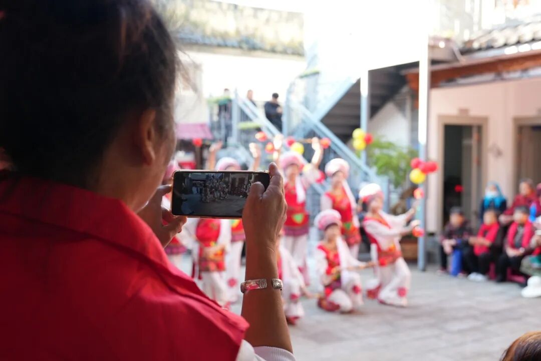 活动中,独具大理白族特色的歌舞节目轮番上演,台下掌声、笑声不断,让长者们感受到了与平日不一样的热闹与喜悦。阿奶们的动作或许不如年轻人那般灵活,但每一个转身、每一次抬手都充满了热情与活力,脸上的笑容像秋日的阳光一样温暖灿烂。她们用灵动的舞姿,向所有人展示了“老有所乐、老有所为” 的老年人形象,让大家看到老年人群体并非只有岁月的沉淀,更有对生活的热爱与对美好的追求。