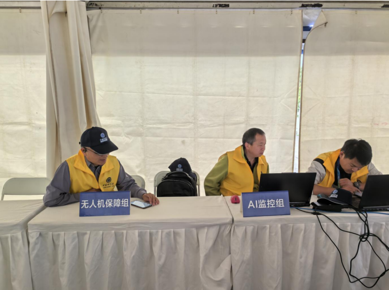 8:30分开赛后持续通报实时数据,9时46分,通过轨迹追踪系统发现运动员杨X华偏离赛道,轨迹异常,立即触发预警,同步推送异常信息至保障组,全程动态追踪形成处置闭环;12时36分,AI系统通过行为分析识别疑似受伤运动员,指挥中心2分钟内完成画面核查并发起语音问询,根据运动员示意快速办结事件。此外,无人机智能扫描系统持续扫描核心区与重点监管区域,有效提升人员搜救能力与非法入山巡查能力。同步实时通报运动员通行、排名等赛事信息。