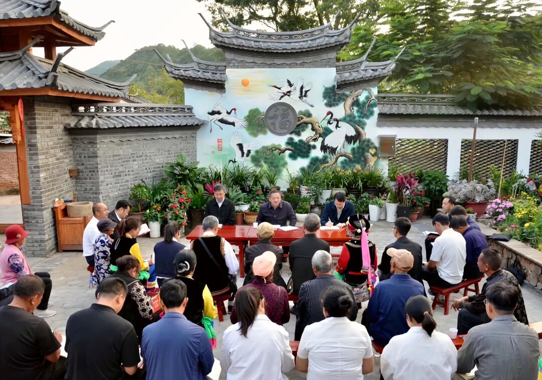 10月30日下午,杨国宗在南涧县南涧镇西山村幸福小院,与当地干部群众围坐一起,宣讲全会精神。