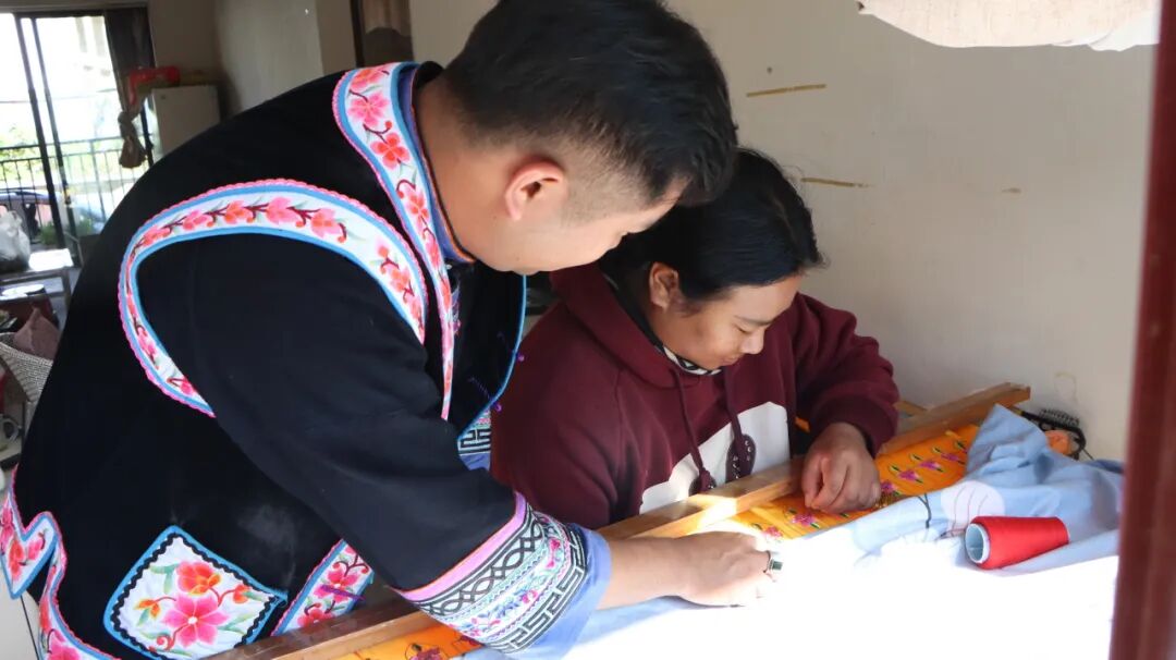 如今,张启诚已经成为漾濞县彝族刺绣非物质文化遗产代表性传承人。2023年4月,他注册成立了云南一剪一绣非物质文化传播有限责任公司。在他的带动下,越来越多的绣娘加入到了他的团队中,公司绣娘多达180多位,覆盖漾濞县鸡街、龙潭、瓦厂、富恒等乡镇,其中脱贫户、低保户共40人,残疾人绣娘6人。