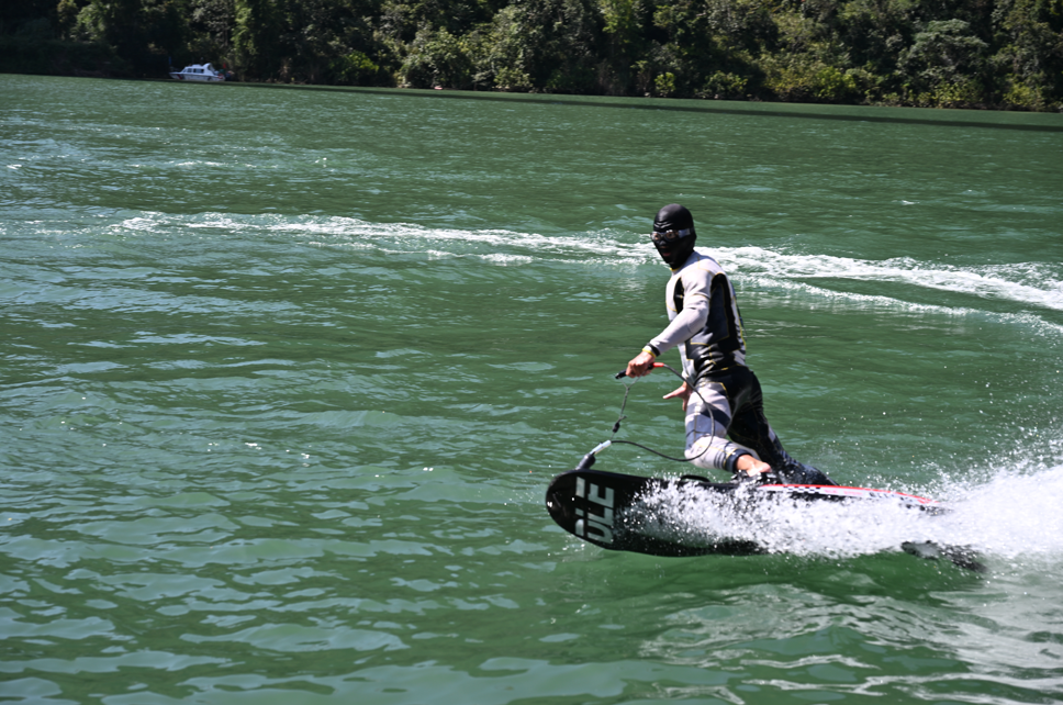 游客在澜沧江猛龙渡体验水上运动。欧阳贵鸿 摄