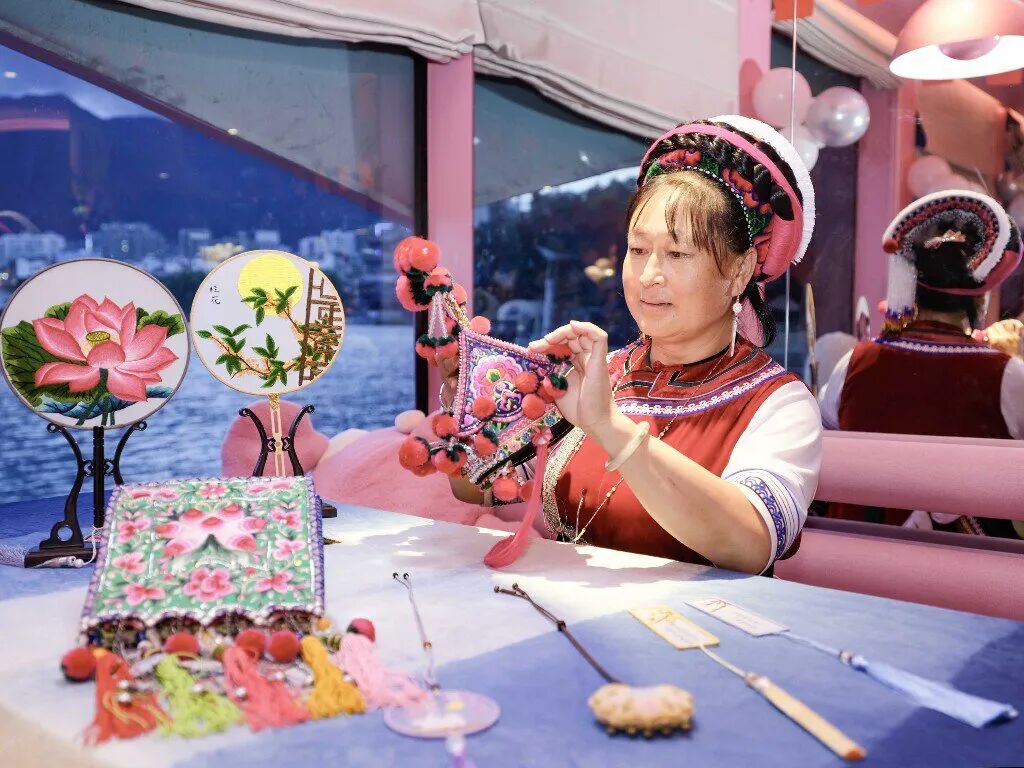这些非遗里的洱海月,早已不是图案,是匠人把对家乡的爱、对自然的爱,缝进了布、锻进了银、刻进了木。就像洱海月永远照拂洱海,匠人也永远守着这份手艺,不让它像水里的月影一样散掉……