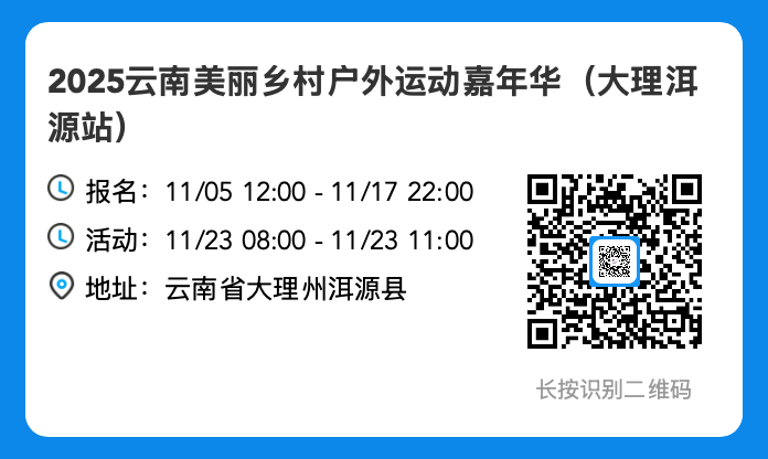 活动时间:2025年11月23日8:00-11:00起终点:大理地热国篝火广场项目设置: