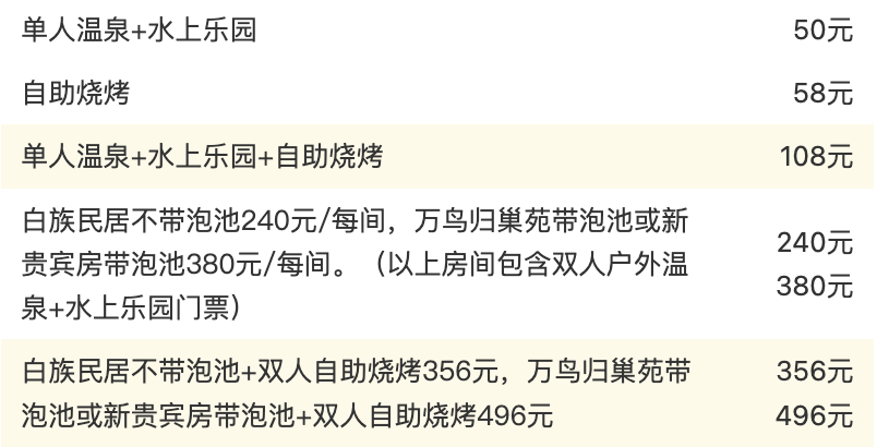 2、订房享受双人户外温泉+水上乐园赠票,额外人员直接到温泉前台补票;