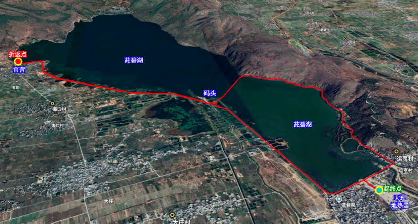 全民健康跑线路:里程12公里,以大理地热国广场主会场为起点~沿茈碧湖畔至官营折返、环茈碧湖~大理地热国广场主会场终点;