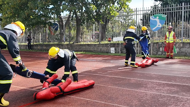 活动当天,还举办了消防技能运动会,12支参赛队伍在模拟灭火、水带连接、伤员救护等项目上展开比拼。