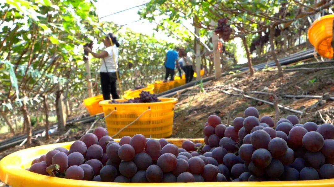 近年来,宾川县巧打 “错季牌”,通过技术创新破解产业瓶颈。2025年全县当下上市的错季、二茬葡萄共3.5万亩,预计总产量7万吨,品种涵盖“红提”“克瑞森”等。