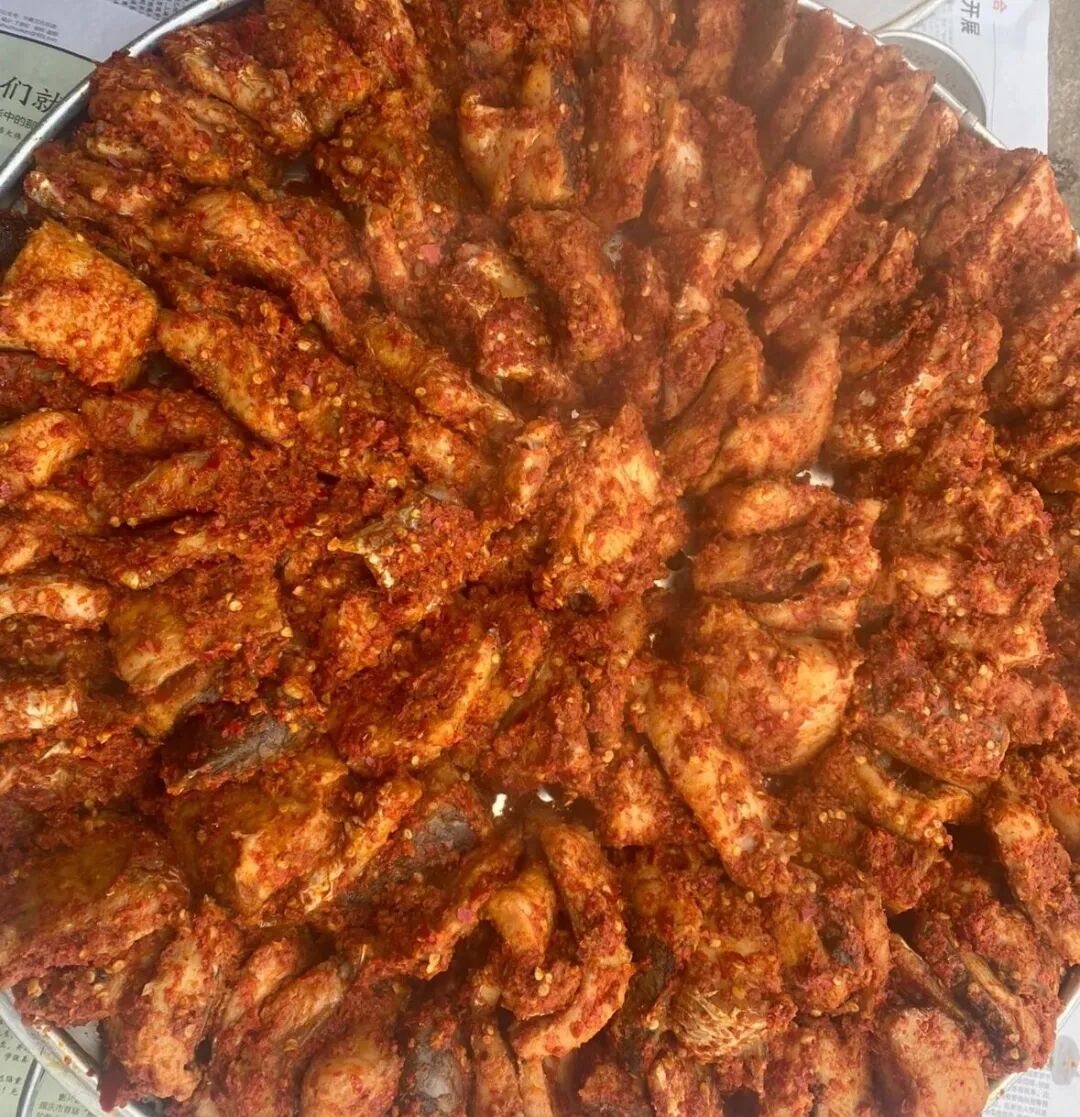 剑川粉蒸鱼是白族人逢节或重要场合必做的美食。将鱼晾干后,抹上一层层粉蒸面和辣椒面等调料,放入蒸笼蒸熟即可食用。粉蒸鱼鲜香味美,软嫩可口,米粉与鱼肉相互融合,形成独特的鲜美味道。
