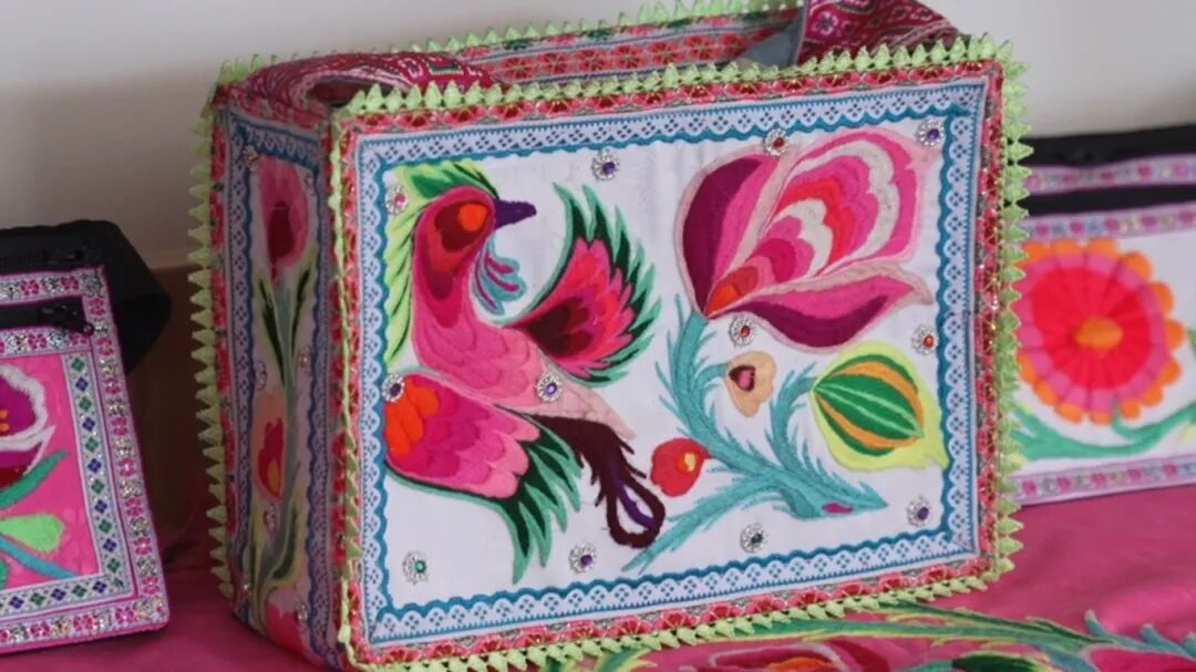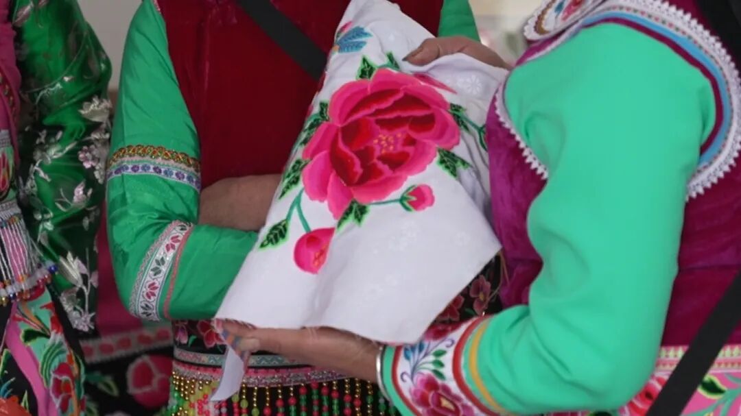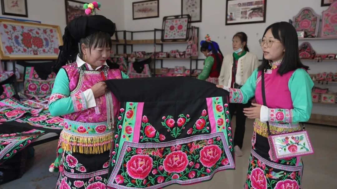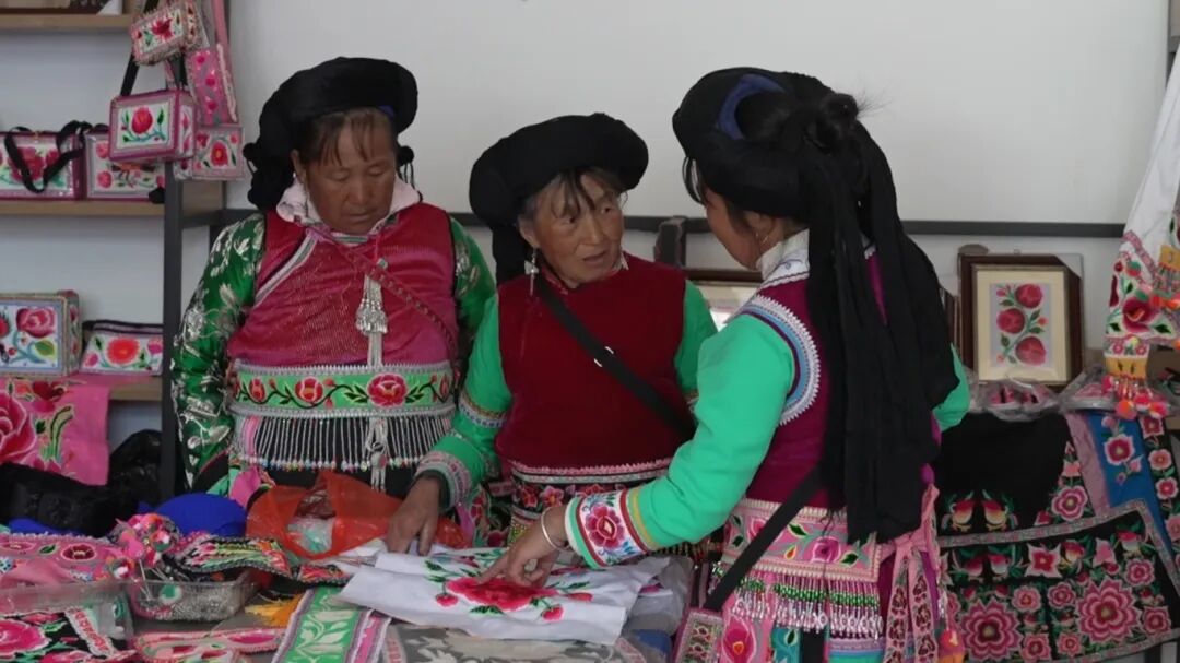这些精美的绣品,不仅装点着山地白族群众的日常生活,更成了女子们凭借巧手增收致富的门路。关坪村村民杨强凤带着三四十件绣品参加展销。