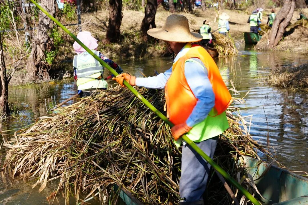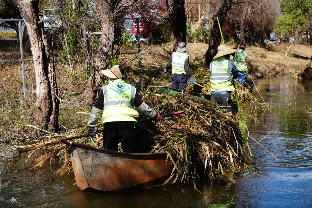 冬季水生植物收割是洱海流域每年定期开展的一项重要工作,从2025年11月下旬洱海流域水生植物收割管理工作启动以来,云南顺丰洱海环保科技股份有限公司进场实施大理市洱海湿地库塘滩地管护项目,负责覆盖12个乡镇街道、140多个库塘、上万亩湿地及全湖142公里海岸线的日常管护工作。