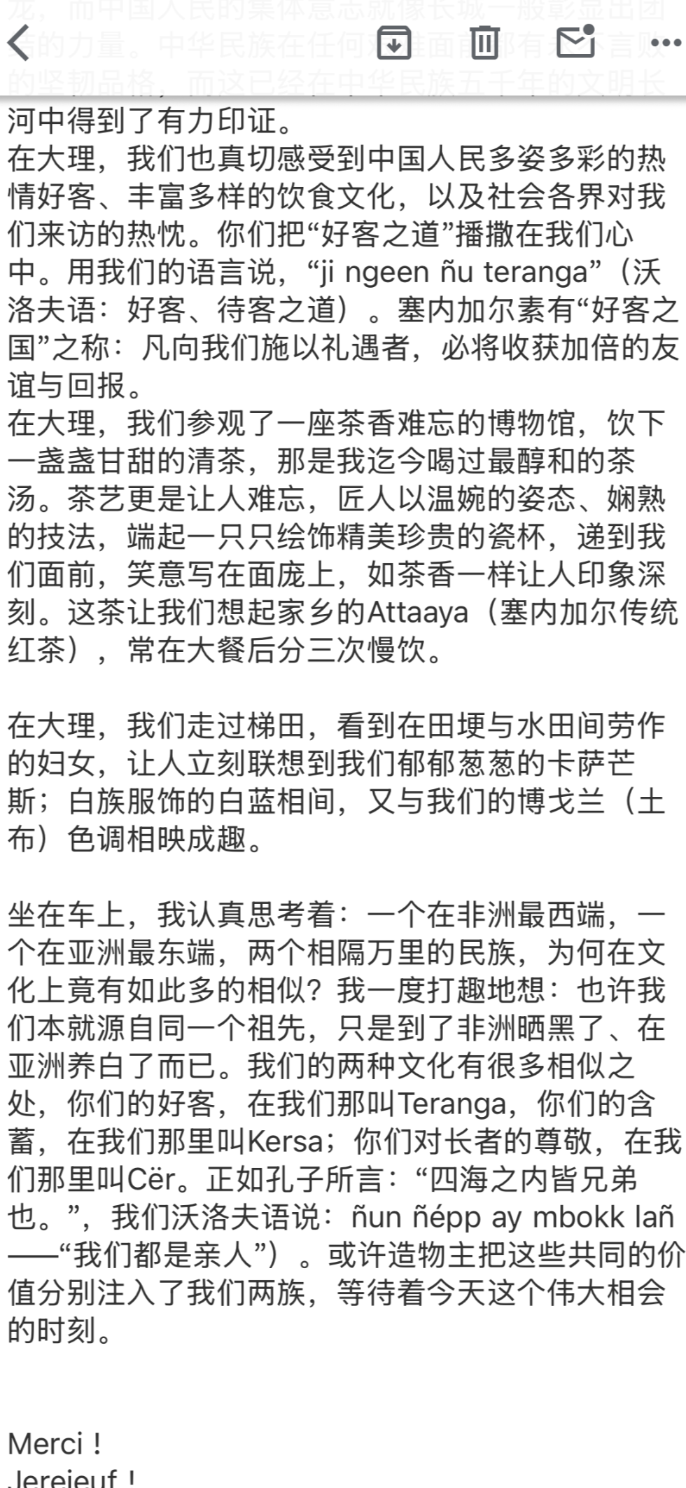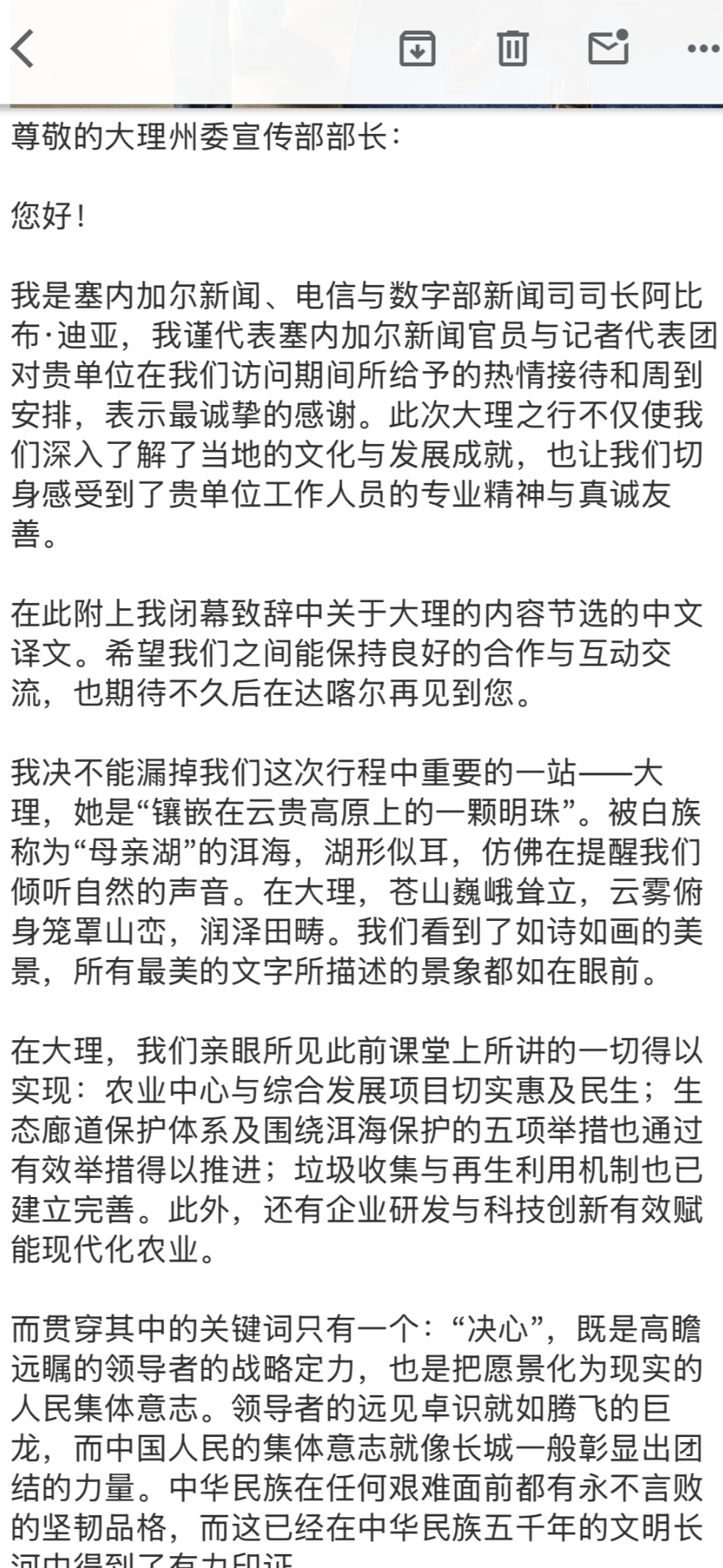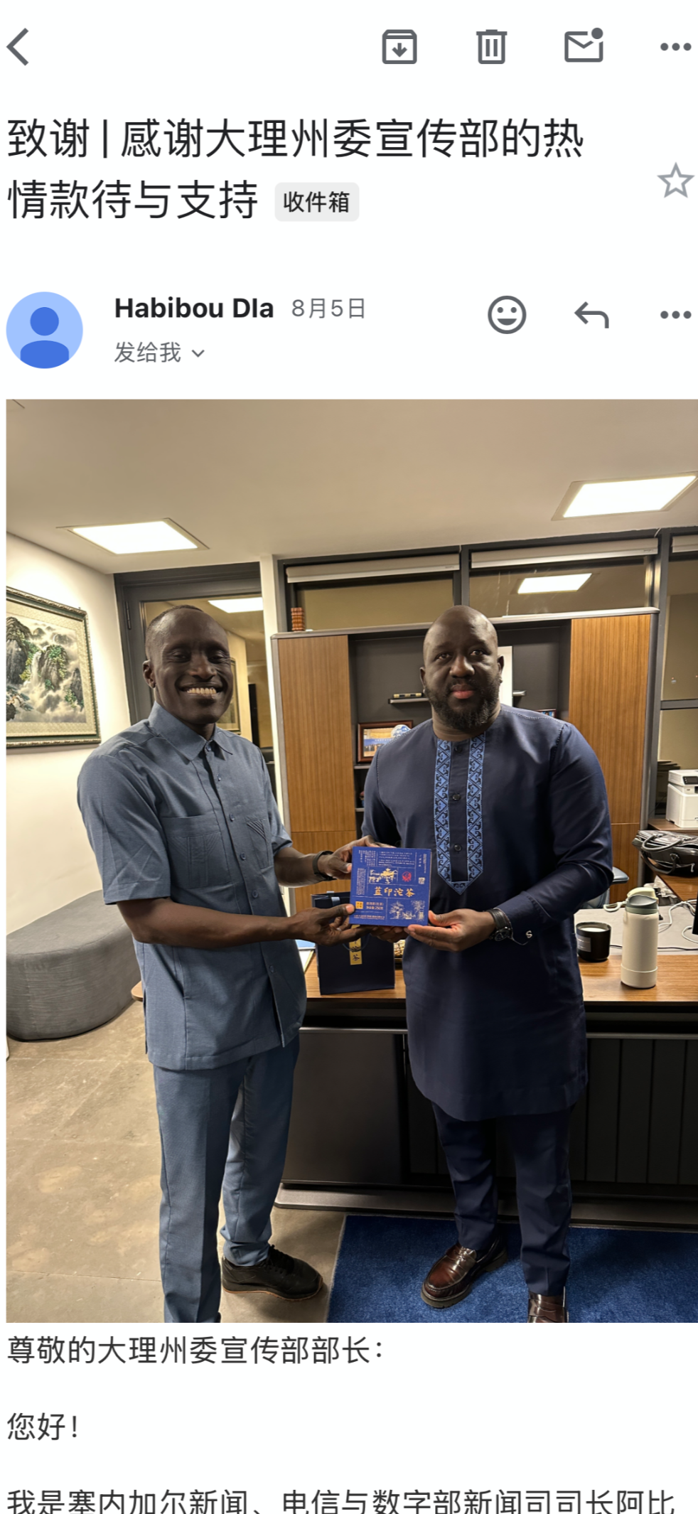 塞内加尔新闻、电信与数字部新闻司司长致信