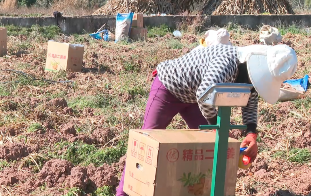 深冬时节,密场村的田野里一派热火朝天的丰收景象,数十名村民手持铁耙,熟练地从土壤中刨出一块块个头饱满、色泽金黄的姜块。