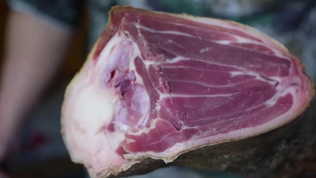 “腌火腿最好的就是选农家猪,我家每年要用到10吨左右的新鲜猪腿。”代建华一边整理着刚送来的猪腿,一边说道,“农家猪生长周期长,喂的饲料少,水分含量低,肉质更紧实,腌出来的火腿风味才足。”