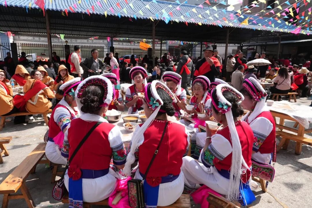 前来赴宴的,还有从重庆来的杨雨一家。“我们是重庆人,十几年前来云南旅游,最后选中大理凤仪定居,到现在已经住了七年了。自从住到凤仪,每年的春醮会我们都来参加。” 杨雨十分感慨,“我觉得这个活动非常有意义,这里的白族人民非常友好、非常朴实,我们是真心喜欢这里。” 在她看来,这种文化传承的氛围令人动容。