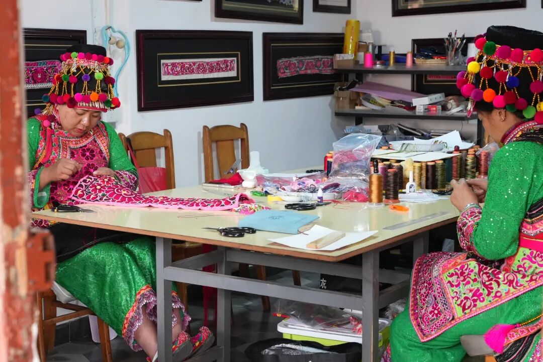穿过古老的院落,时光仿佛慢了下来。窗边,村里的老人和妇女正安然刺绣,阳光在她们的指尖与丝线间流转,这是世代相传的技艺,也是日常生活的模样。