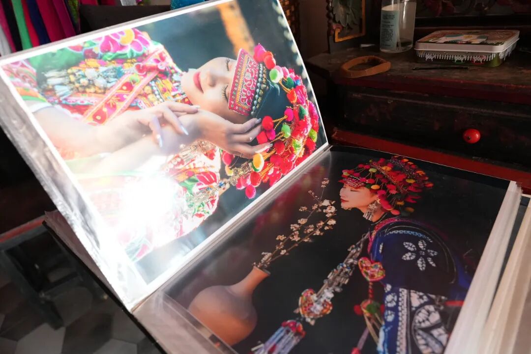 作为大理彝族服饰州级非遗传承人,小院主人瞿标祥始终坚守着活态传承的理念。在这里,非遗体验与旅拍从未割裂:游客可以一边在文化体验馆亲手尝试刺绣、剪纸,感受一针一线的匠心;一边换上承载着民族故事的彝族服饰,在百年老院里沉浸式拍摄,定格专属的文化记忆;累了便在书屋看书,或是围坐在火塘边煮茶闲谈,真正体验到“来彝族山村做客”的自在与惬意。