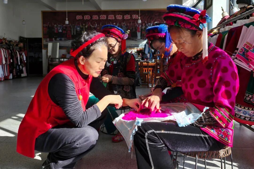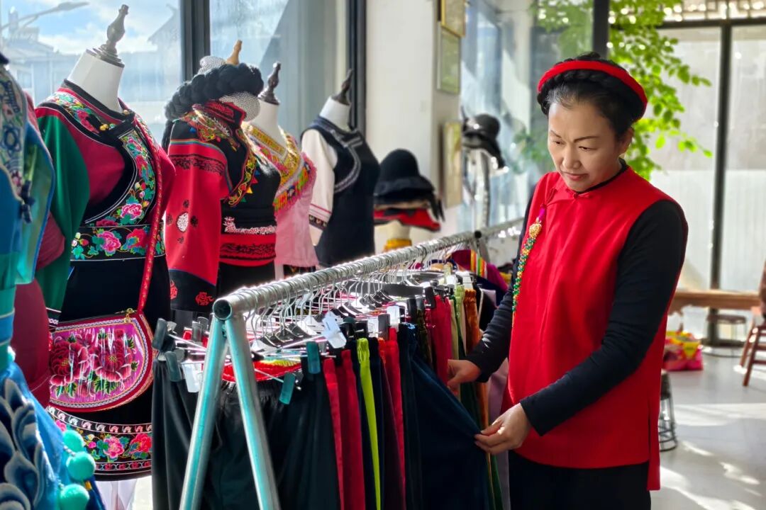 “她们既要承担生活重担,又无法外出务工。空有手艺却无处施展,于是,我便将大家组织起来共同开展这项事业。”怀着“有了稳定收入,家庭就有了希望”的信念,她先后创办了“大理市云绣服装专业合作社”和“大理市刺绣协会”。