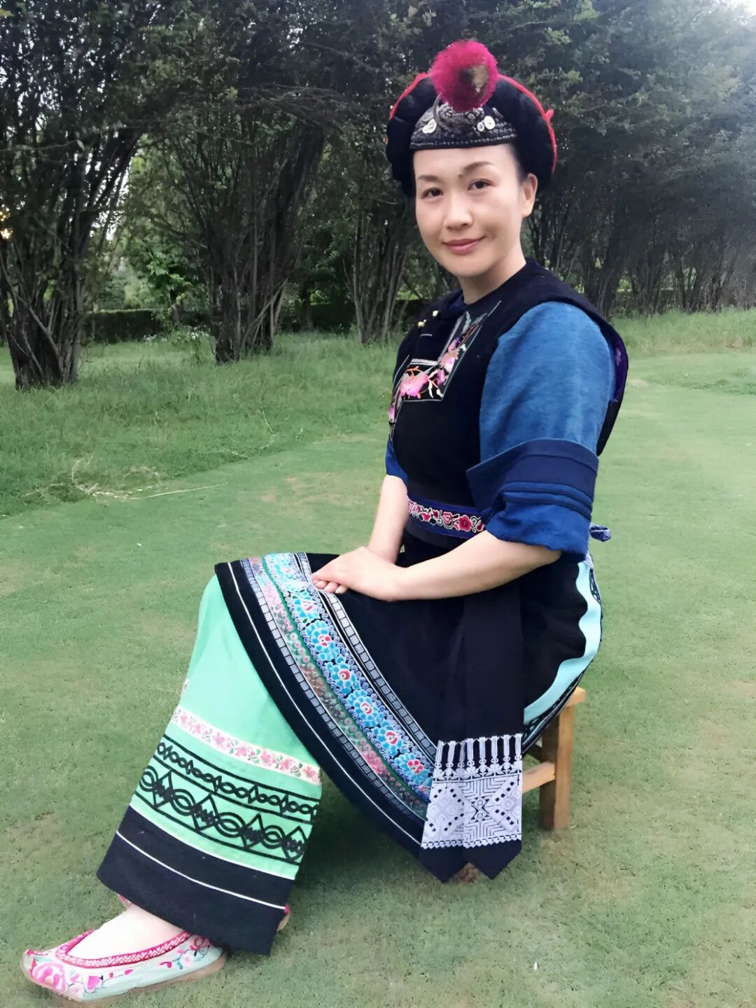 17岁那年,在“三月街”民族节的一场演出中,她被白族服饰的华彩深深震撼。正是这次机缘,她结识了丈夫李文飞——兆邑村白族服饰制作世家的第四代传人。两人终成眷属,并肩行走在白族服饰制作与传承的道路上。