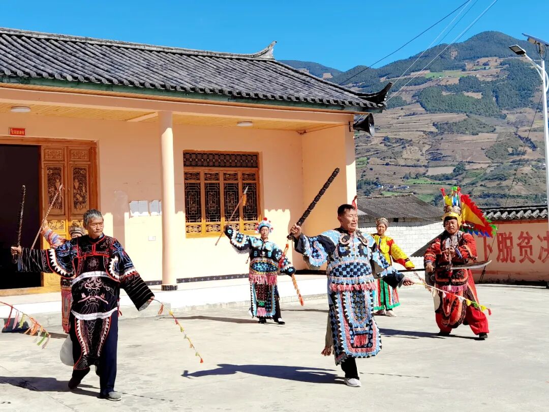 为了让艺术有更稳固的阵地,早在上世纪70年代(1979年),张国藩便牵头组建了“丹嘎白族吹吹腔业余剧团”,并担任团长至今。在他的带动与当地政府的支持下,功果桥镇形成了以剧团为支点、节庆为依托的活跃文化生态。每年春节、火把节等重大节日,惠民演出不断,年均演出超过12场,真正营造出“月月唱大戏,天天有活动”的浓厚氛围,极大地丰富了当地群众的精神文化生活。