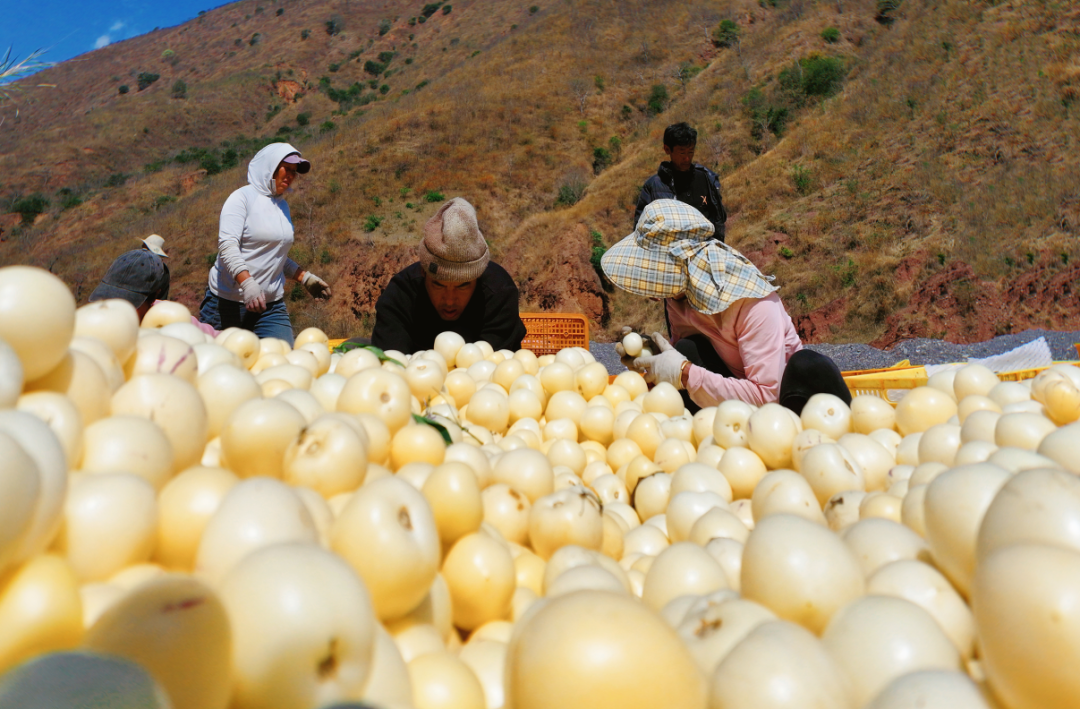 碧溪乡瓦木字村致富带头人、人参果种植户字文忠介绍:“我种了30亩人参果,每亩产量4到6吨,我们主打反季节人参果,口感清甜、果肉饱满,群众很喜欢。每年丰收季,基地每天用工可达60人,带动乡亲就近务工。接下来我们还会拓展销售渠道,把产业做得更大。”凭借反季节上市、口感清甜多汁的核心优势,当地人参果在市场上备受青睐,也为产业持续发展筑牢了根基。