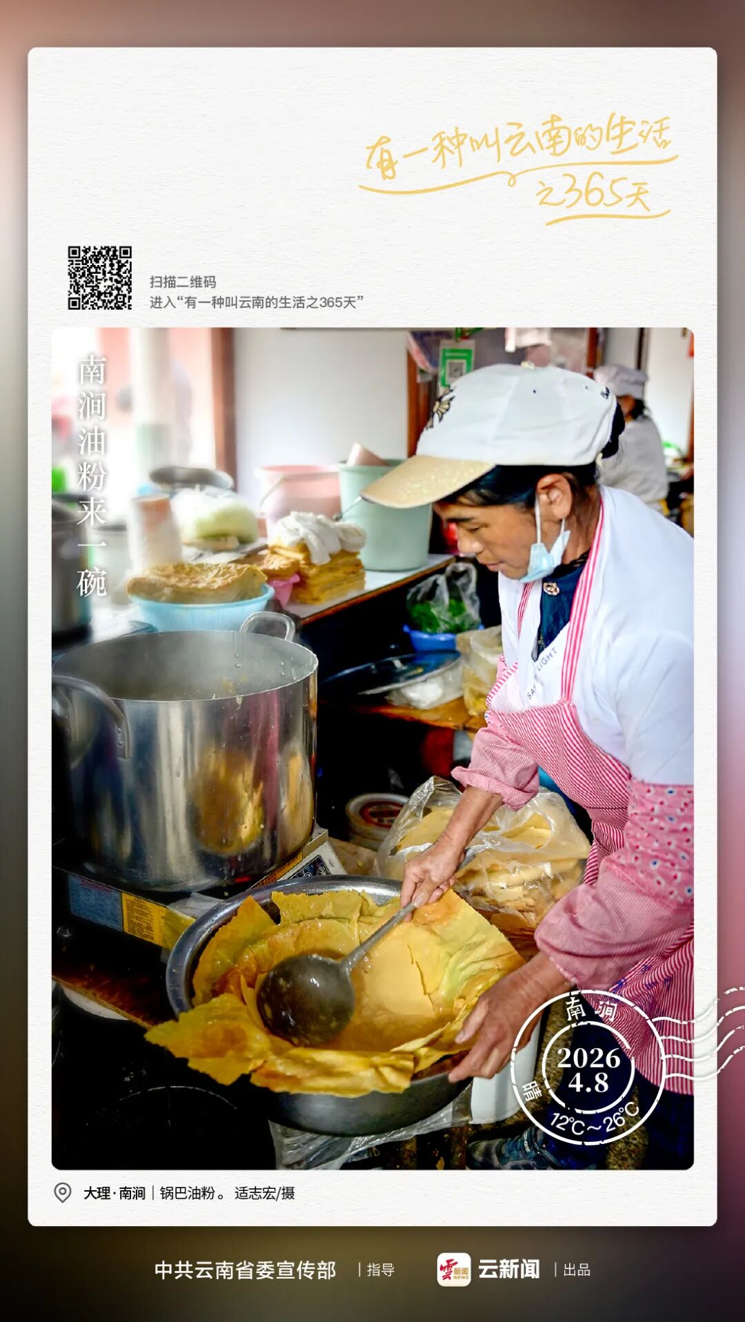 在云南省大理白族自治州南涧彝族自治县,藏着一道非遗小吃——锅巴油粉,被当地人叫作油粉,不少人初见它,都误以为是甜滋滋的千层甜品。