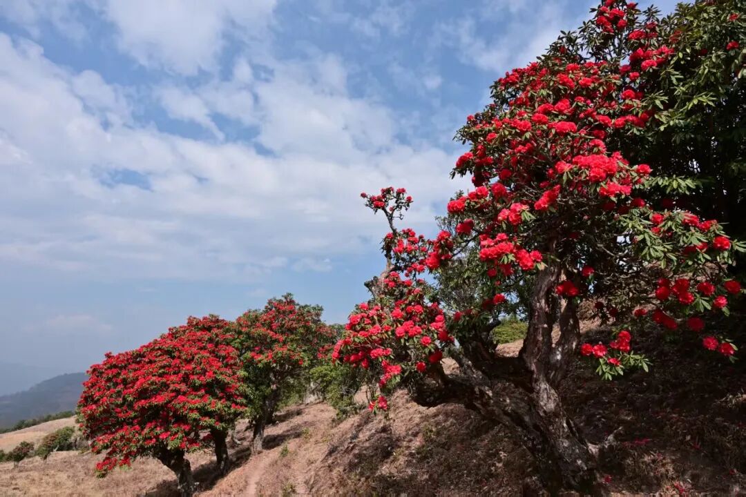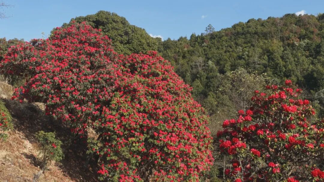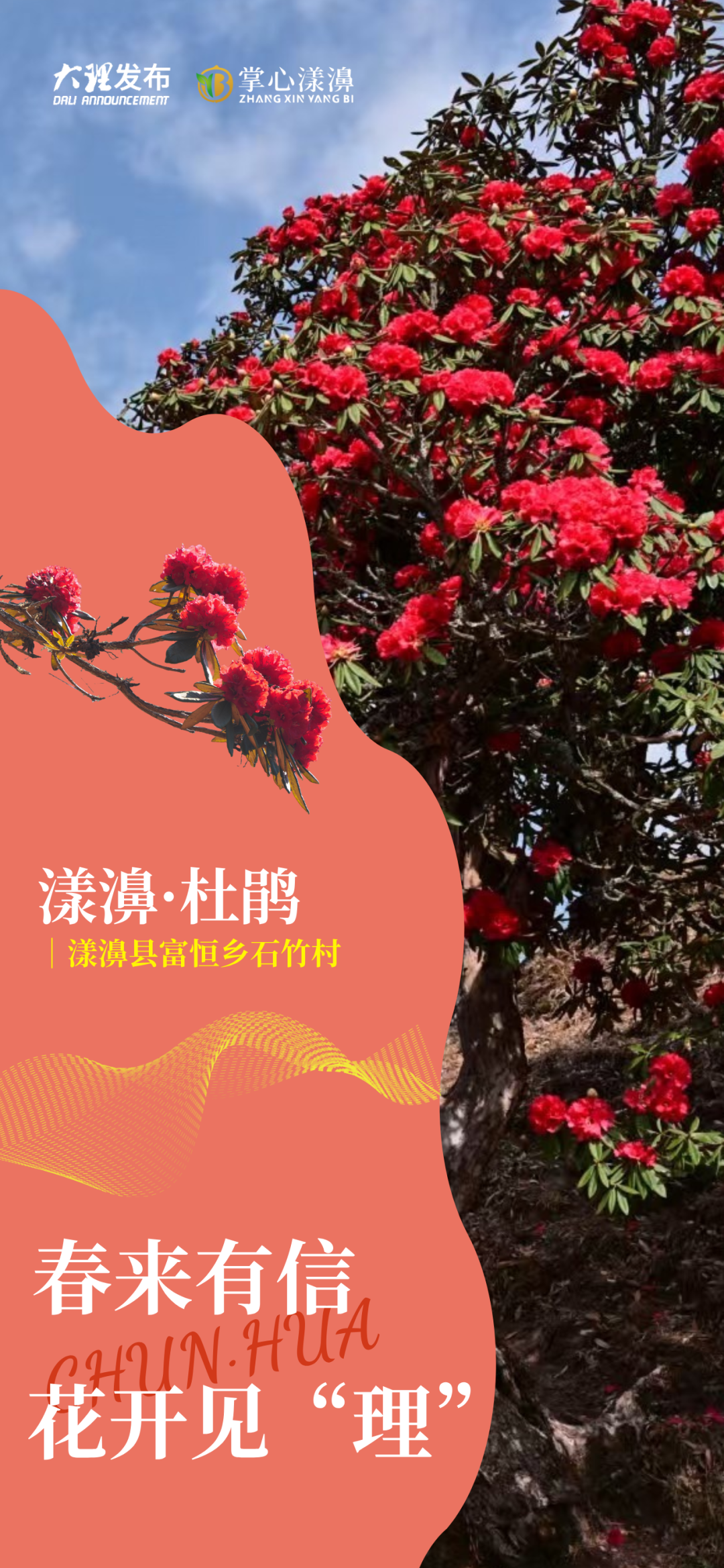 每年2月至6月,漾濞县富恒乡石竹村万亩杜鹃漫山遍野竞相绽放,这里有高山大红杜鹃、黄杯杜鹃、白雪杜鹃、团花杜鹃、宽种杜鹃等20余种杜鹃,与百年古山茶花交相辉映,美不胜收。