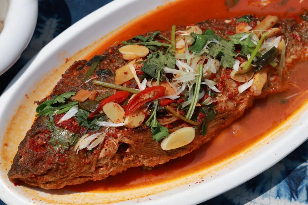 ✅ 酸辣鱼:强推必尝!作为大理标志性特色菜,新鲜鱼肉搭配白族秘制酸辣汤底,酸得过瘾,辣得鲜香,鱼肉鲜嫩入味,汤汁泡饭能连干三碗,妥妥的宴席C位!