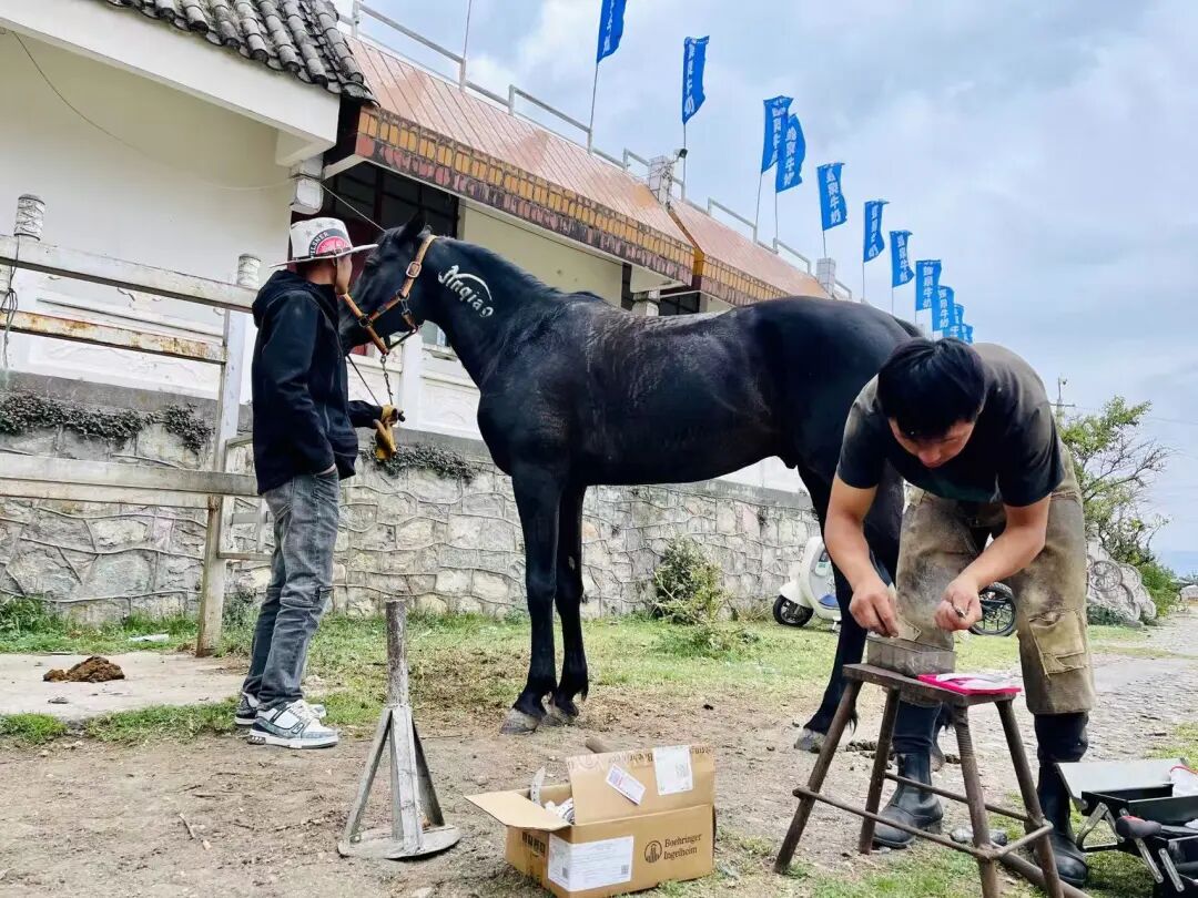 邓建威教练一边冲洗着马蹄一边向记者介绍说:“大理海拔高,人和马都需要提前适应。骑手做体能训练和呼吸调节,马匹也要慢慢加运动量,有的马长途运输过来有点疲劳,我们就让它先调整休息,一定用最好的状态参赛。”
