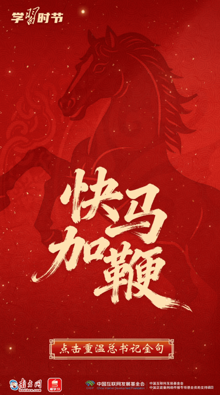 习近平总书记多次用“龙马精神”“马到功成”“一马当先”等耳熟能详的成语,向全国各族人民送上最美好的新春祝福,寄予奋进向上的殷殷嘱托。马年新春,来接收总书记的祝福和寄语,一起策马扬鞭,奔向更美好的明天!